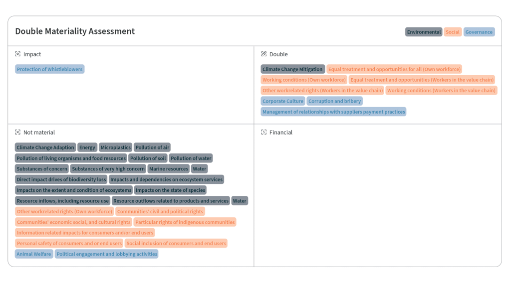 This past year marked a milestone for Vizrt as we completed our first Double Materiality Assessment in alignment with ESRS requirements. This initiative underscored our commitment to understanding and addressing our key sustainability issues through a comprehensive process. By engaging a diverse group of internal and external stakeholders; including employees, suppliers, customers, and investors, we gained valuable insights into their concerns and expectations. Our assessment process combined stakeholder interviews with in-depth research to identify and prioritize sustainability topics relevant to our operations. Each identified issue was then evaluated for its potential environmental and financial impacts, as well as associated risks and opportunities, using both qualitative and quantitative methods.