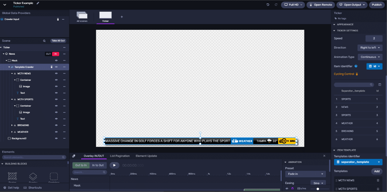 Viz Flowics has just this year released a brand-new ticker that supports multiple templates to render stories in different formats based on the ‘item type’. Some of the world’s top broadcasters and ticker pioneers have already adopted this easy and effortless to use ticker. What’s special is that the Viz Flowics Ticker can be configured to remember the last story on air before the ticker is taken out (during a break in programming) and will cleverly resume from that same story when taken in after the break.