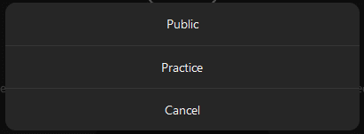 Before you can continue, you’ll need to choose your audience. “Public” and “Practice” mode are going to be your two options.