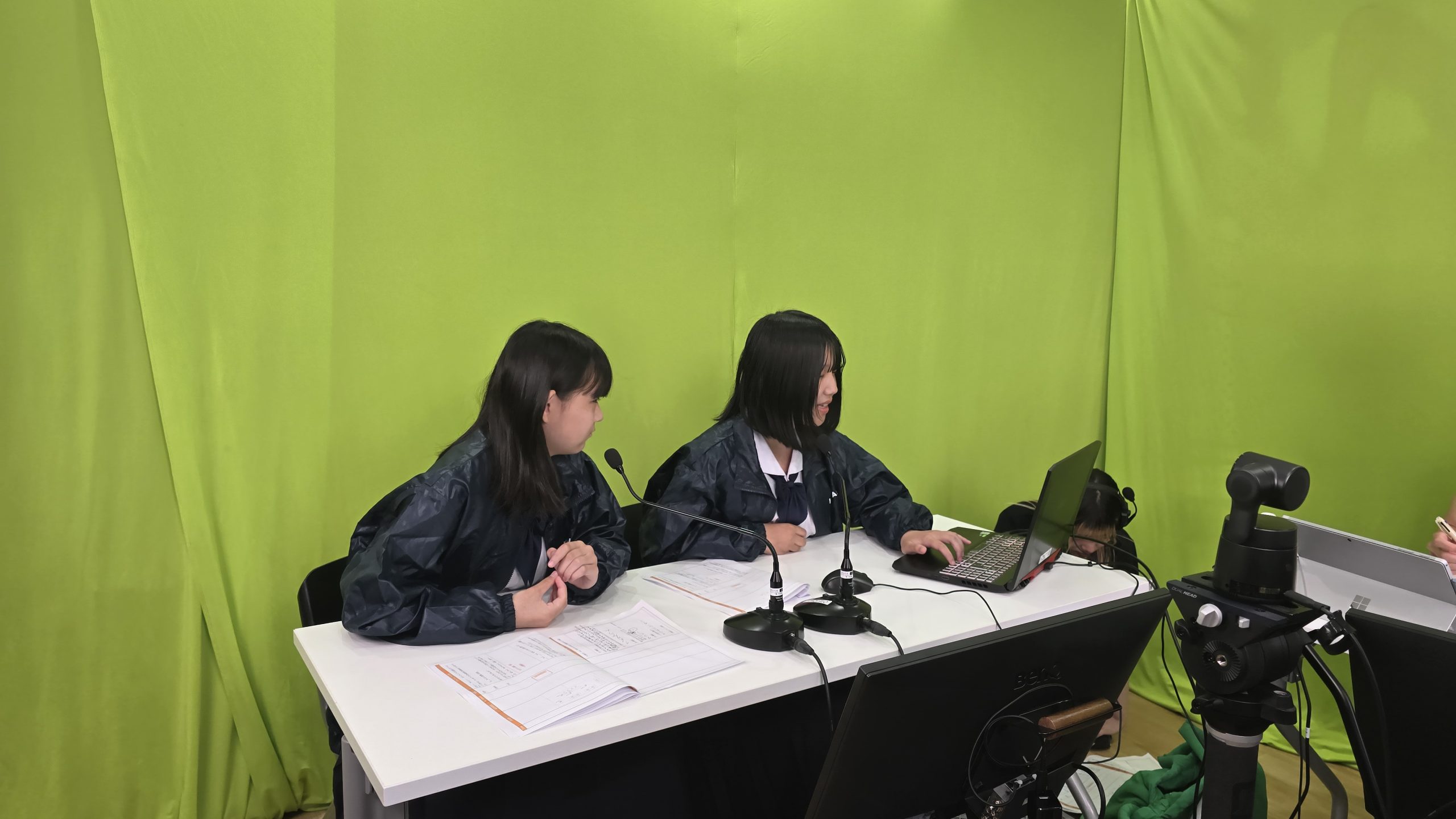 The students, Yui Kitasaka and Mao Asai, from Toyama Municipal Hayahoshi Junior High School spent the week preparing and executing a real broadcast.