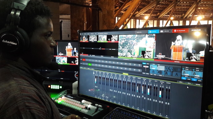 Now, says Mwachuo, with both TriCaster Mini field kits configured to switch four JVC HM 200 cameras, “the only thing that we spend time on is conceptualizing the graphics once we’re in post, and then we insert them in the TriCaster. Immediately when we call it a wrap, when we are done with the production, we already have our program at hand. It really helps us complete more programs.”