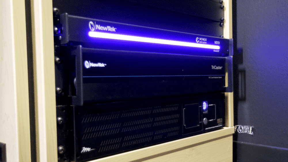 “The whole building is tied together in a platform called NDI,” Avellone says. “NDI is basically video-over-IP, which NewTek developed a couple of years ago. Now, it’s a protocol in the industry. I use the phrase, ‘if you’re not using NDI, you’re a dinosaur,’ because video-over-IP is what makes this whole set-up happen. With NDI, we can go anywhere in the complex with a camera and plug into a network jack and send the signal from that camera to the new control room where it can be simulcast or web streamed.”