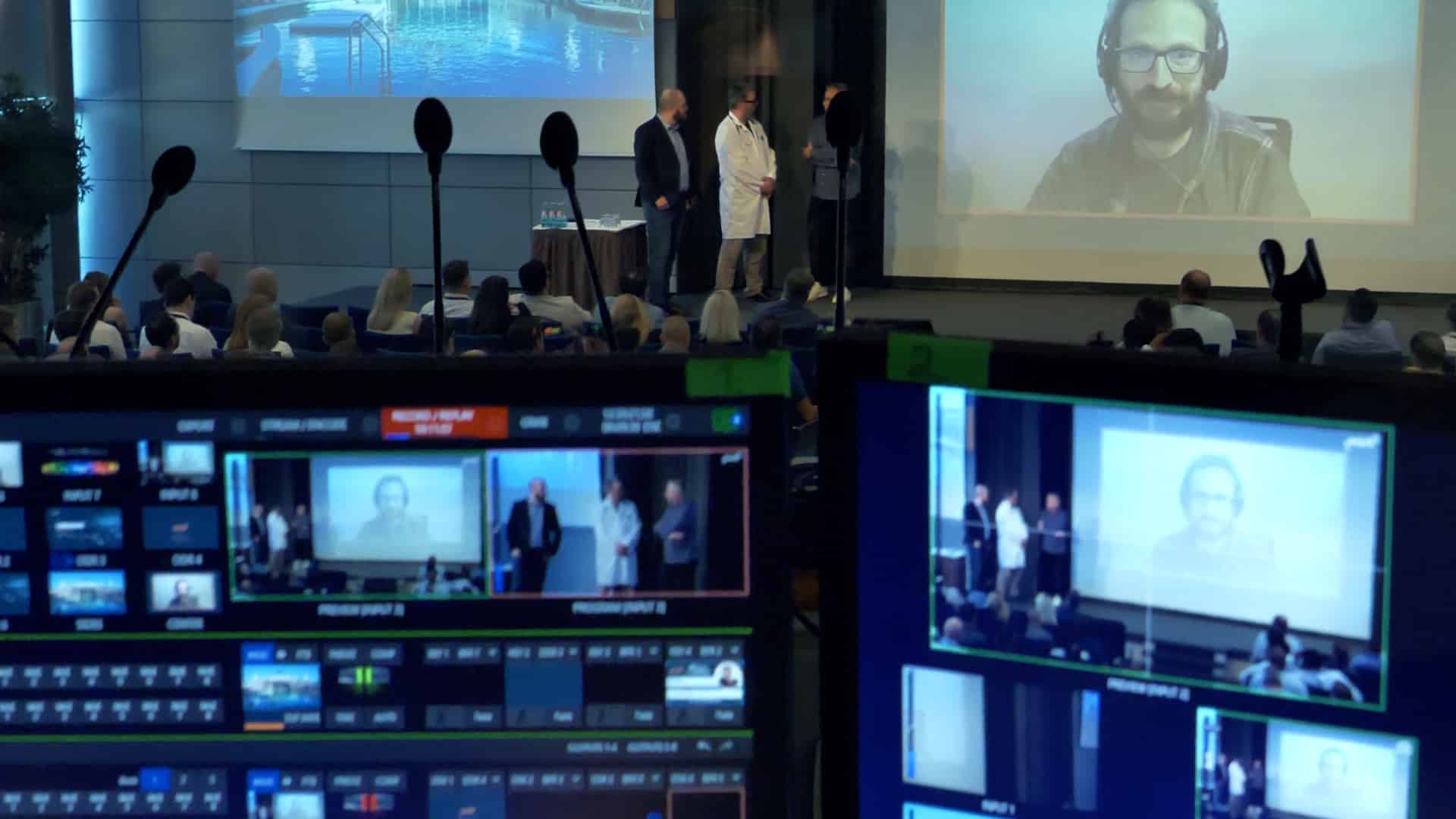 Vizrt successfully integrated its technologies with the venue’s existing infrastructure to elevate the production value. A detailed wiring diagram was created to plan signal flows and ensure flawless integration of all technology components. This was essential for managing the complex setup, which included projectors, downstage and upstage monitors, digital signages, PowerPoint presentations, audio mixing, and a virtual studio.