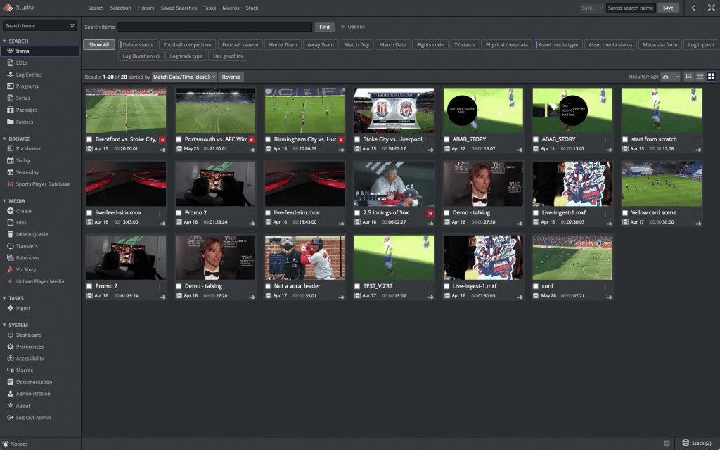 Ingest files and NDI® streams, browse growing files as the action unfolds on the pitch, and automatically log sports-specific metadata with Opta integration, in Viz One