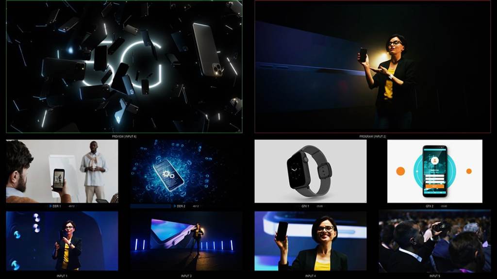 Comprehensive camera coverage and compelling multi-source video mixing, including 16 external inputs and 4 M/Es