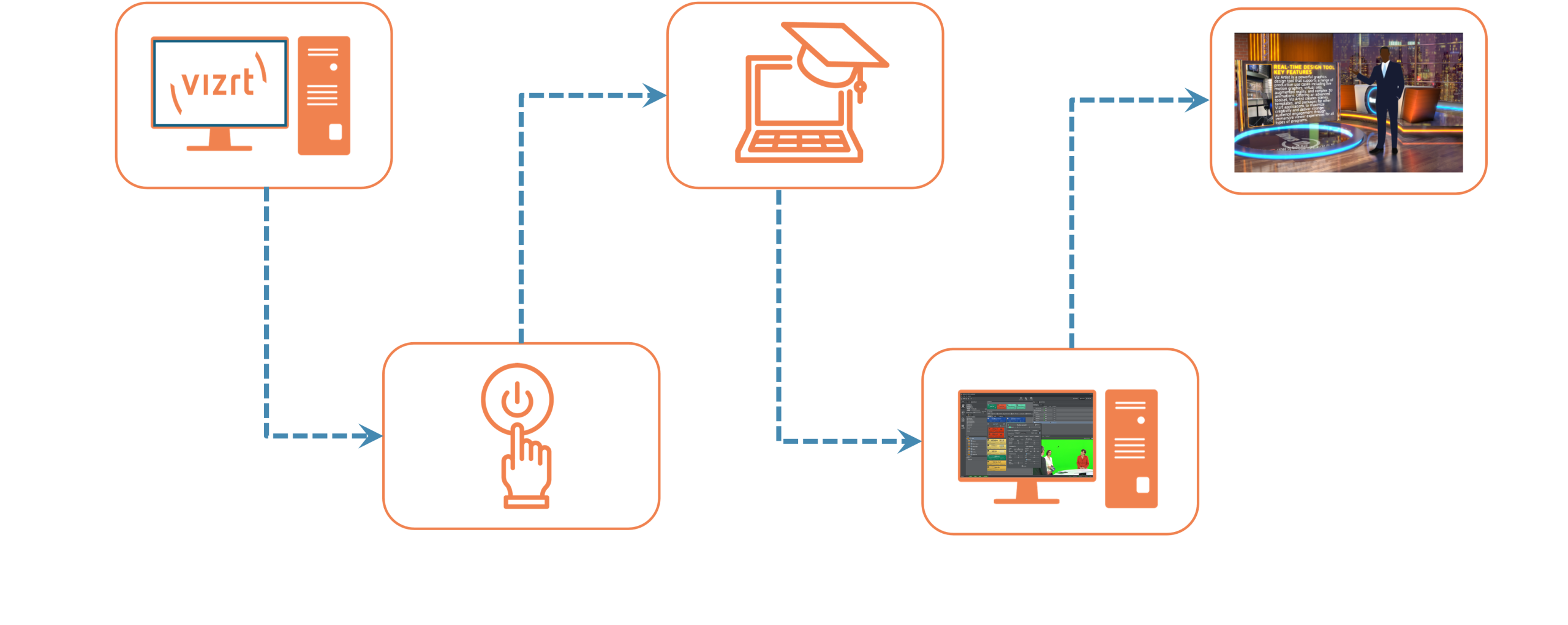 It’s all in the box. And with no initial cost for creating AR graphics or a virtual set scene, you save time and money. It’s your entryway to Vizrt workflows.