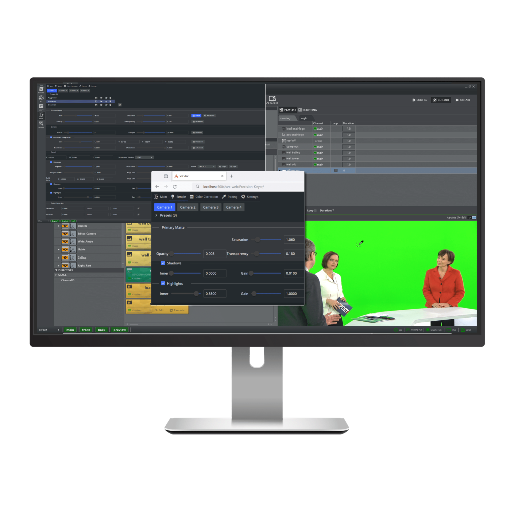 With the new Precision Keyer Control Web Interface users are no longer tied to the physical location of the Viz Engine. Instead, use any web browser to access the Viz Engine Precision Keyer from any desktop location, including a tablet, on your network.