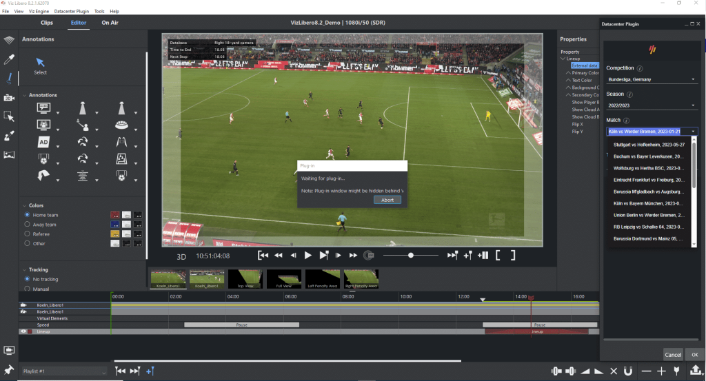 Simply select the data from the relevant dropdown menu. Access data from several games within a single Viz Libero project. Simple and flexible data integration for different games, all at the same time. Datacenter comes with native integration to StatsPerform data.