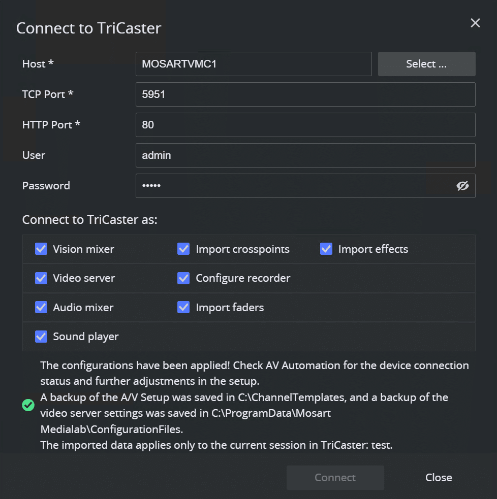 Viz Mosart and TriCaster already make a great team but it just got even better. Thanks to the new “Connect to TriCaster” feature, you can easily discover and connect to a TriCaster on your network; Viz Mosart then automatically populates its configuration with parameters fetched from the TriCaster.